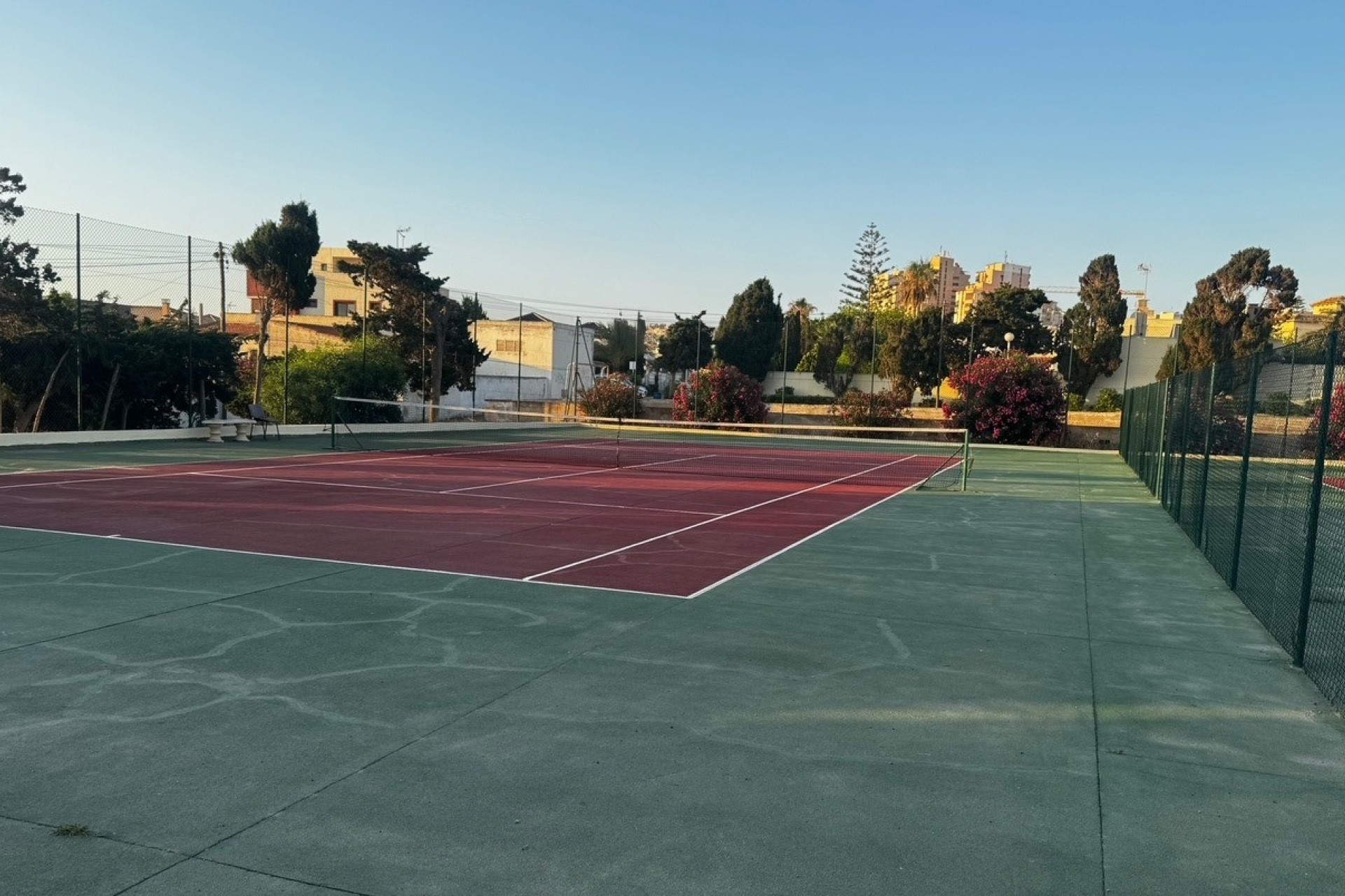 Esta casa se encuentra en una urbanización cerrada con zonas verdes, aparcamiento y piscina comunitaria.